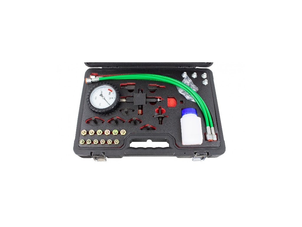 Profesionální diagnostická sada určená pro dynamické měření tlaku v systémech Common Rail vznětových motorů. Sada je vybavena precizním glycerinových manometrem, který tlumí vibrace ručičky a umožňuje přesné odečítání hodnot.