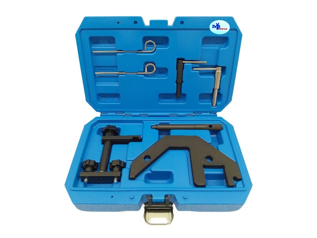 Tato komplexní sada aretačních přípravků je určena pro blokování a nastavování rozvodů vznětových motorů s přímým vstřikováním Common Rail. Je nepostradatelná při výměně rozvodového řetězu, opravách hlavy válců nebo nastavování časování u motorů s objemem 2.0 a 3.0 litru.