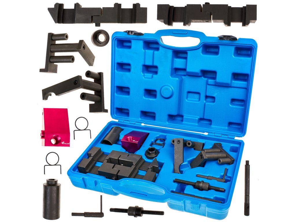 Přípravek pro napnutí řetězu v pravém horním uložení při sundaném krytu rozvodů, při servisování elementů VANOS nebo při regulaci křivky