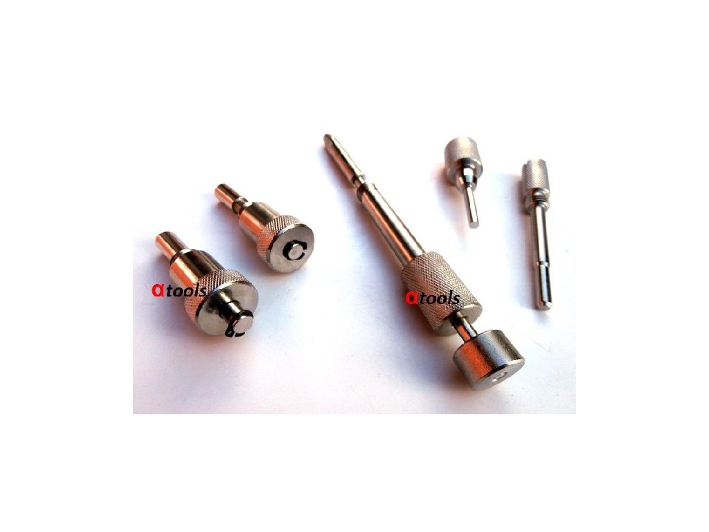 Sada obsahuje kolíky pro nastavení vačkové a klikové hřídele a aretační kolík napínáku.