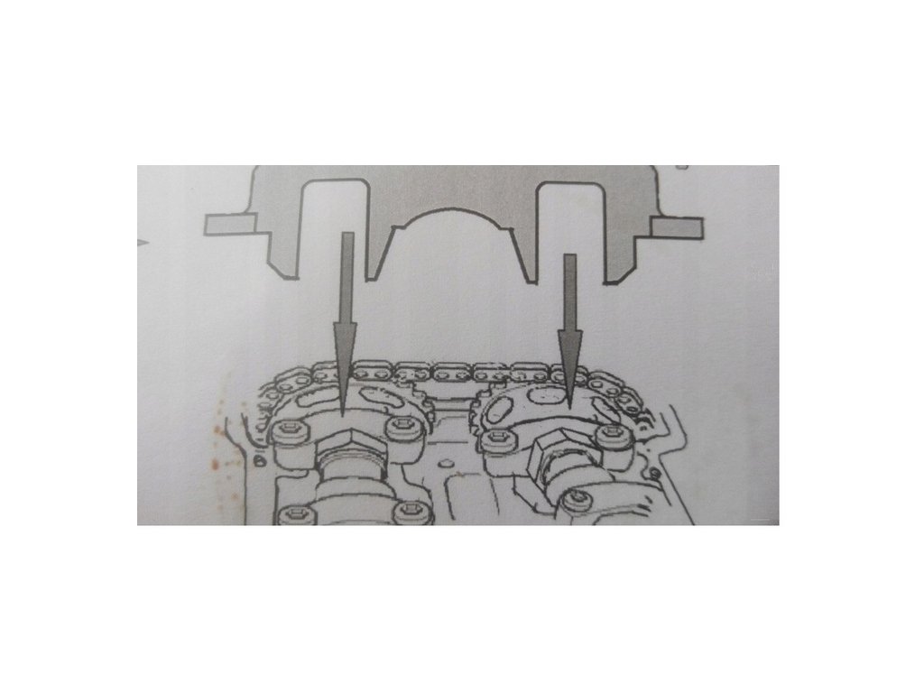 Zabraňuje obejití rozvodového řetězu na ozubených kolech vačkového hřídele. Při použití nýtovačky rozvodového řetězu, zabraňuje neúmyslnému kroucení ozubených kol vačkového hřídele. Jakmile je rozvodový řetěz přinýtován mezi ozubenými koly vačkových hřídelí, žádné z ozubených kol se nemůže nechtěně kroutit.) Za druhé, umožňuje 100% bezpečnou instalaci rozvodového řetězu umístěného na přepážce. 6.