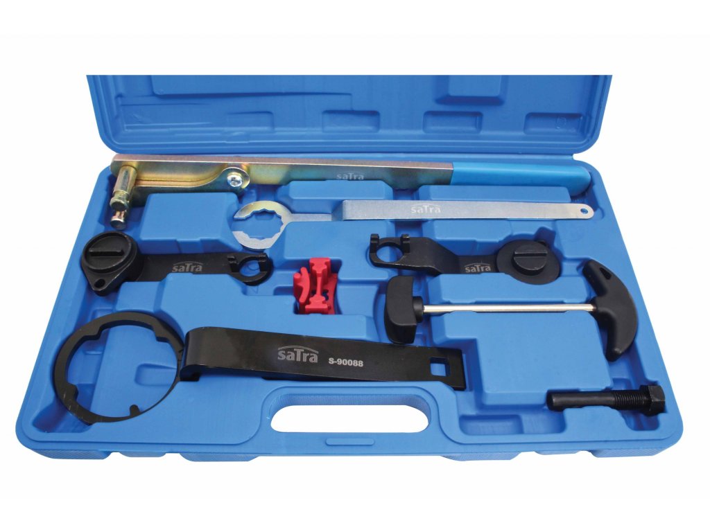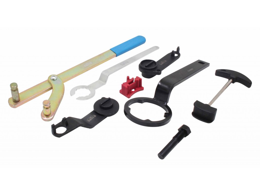 Tato profesionální sada je určena pro blokování a nastavování rozvodů u moderních nízkoobjemových benzínových motorů koncernu VAG s rozvodovým řemenem. Sada je univerzální – pokrývá jak 3-válcové motory 1.0L, tak i 4-válcové motory 1.2 a 1.4 TSI nové generace.