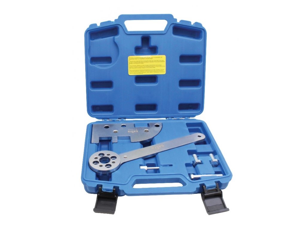 Sada obsahuje specifický aretační kolík 999 7233, bez kterého nelze bezpečně zafixovat kolo vstřikovacího čerpadla, což je u systému Common-Rail kritické pro správný start motoru.