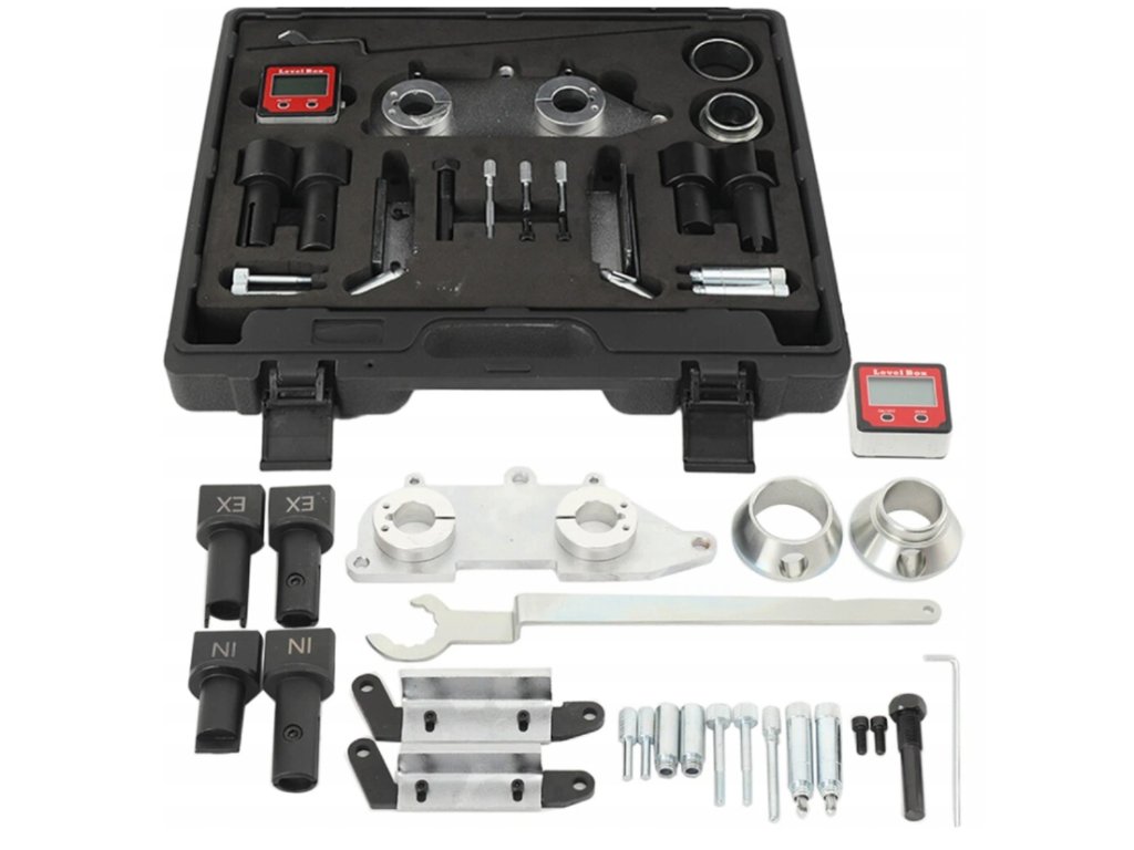 Sada používá bateriově napájený digitální sklonoměr kombinovaný s přesně vyrobenými adaptéry a seřizovacími nástroji, aby bylo zajištěno, že vačkové hřídele jsou nastaveny podle specifikací výrobce.