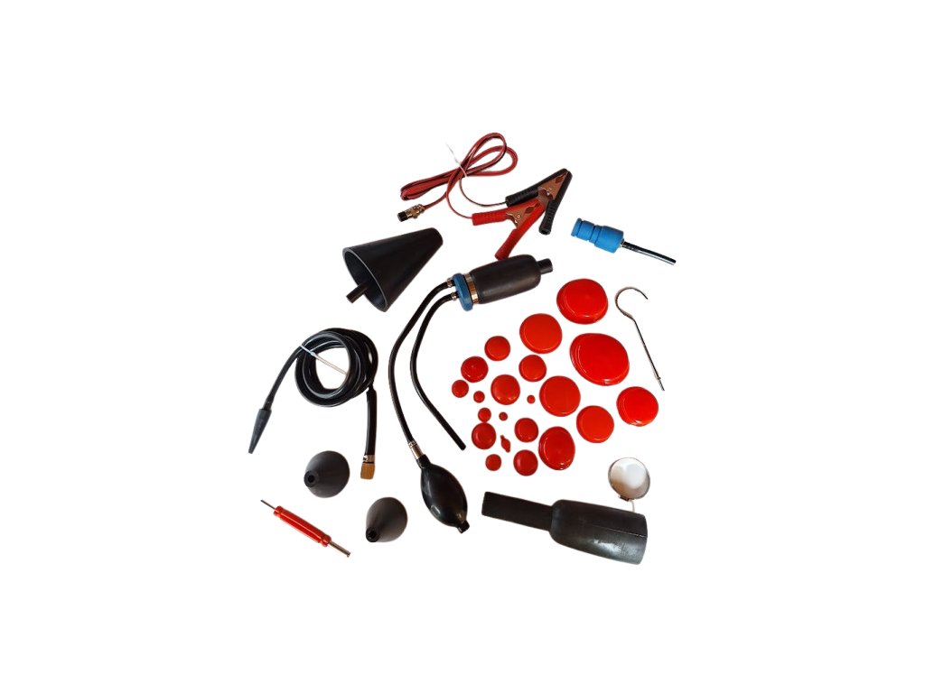 Možnost použití zařízení pro testování sacího systému, test turbodmychadla, test výfukového systému, test chladícího systému, test těsnění vozu, test palivové nádrže, test různých tvarovek potrubí