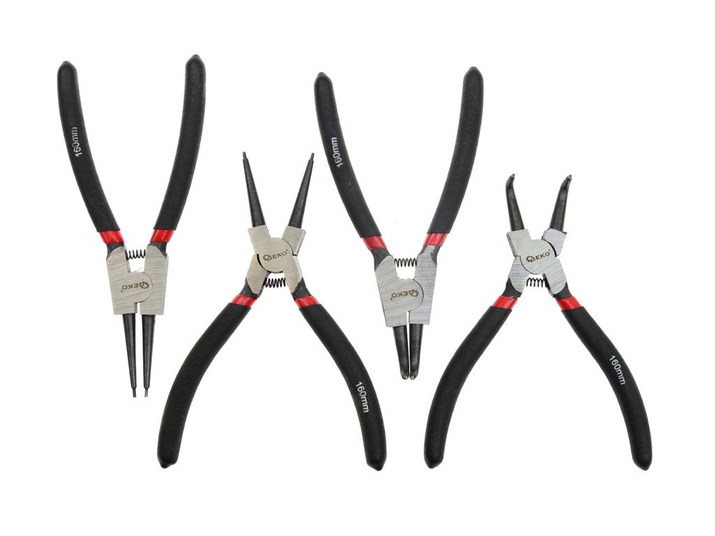 Tato sada čtyř kusů kleští je nezbytným nástrojem pro každého mechanika i kutila. Je určena pro bezpečnou a přesnou manipulaci s pojistnými kroužky (tzv. "segrovkami"), které zajišťují ložiska, čepy a hřídele proti osovému posunu. Sada pokrývá obě základní varianty kroužků – vnitřní i vnější.