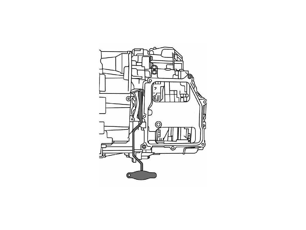 Použití klíče: Klíč T10407 se používá k mechanickému odtlačení pák tak, aby bylo možné mechatroniku vysunout směrem nahoru, aniž by došlo k ohnutí ovládacích tyček.