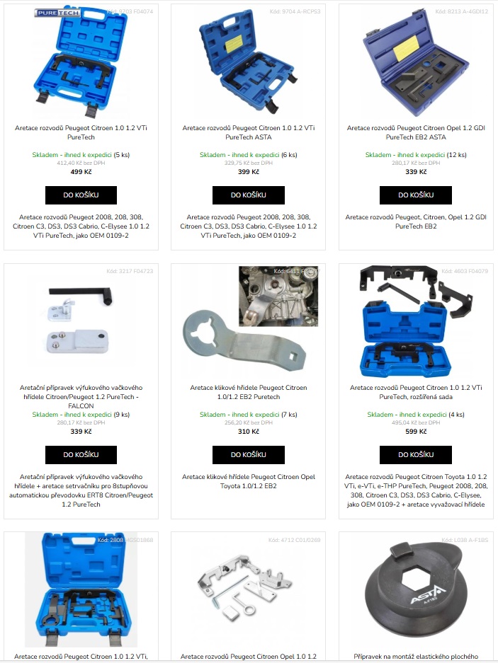 Příklad v nabídce: Aretace rozvodů Peugeot Citroen 1.0/1.2 VTi PureTech - atools.cz