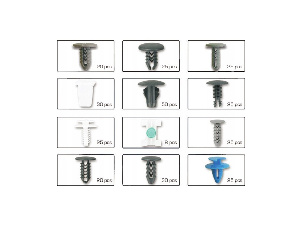 Plastové spojovací prvky, spinky, nýty pro vozy Fiat, 308ks