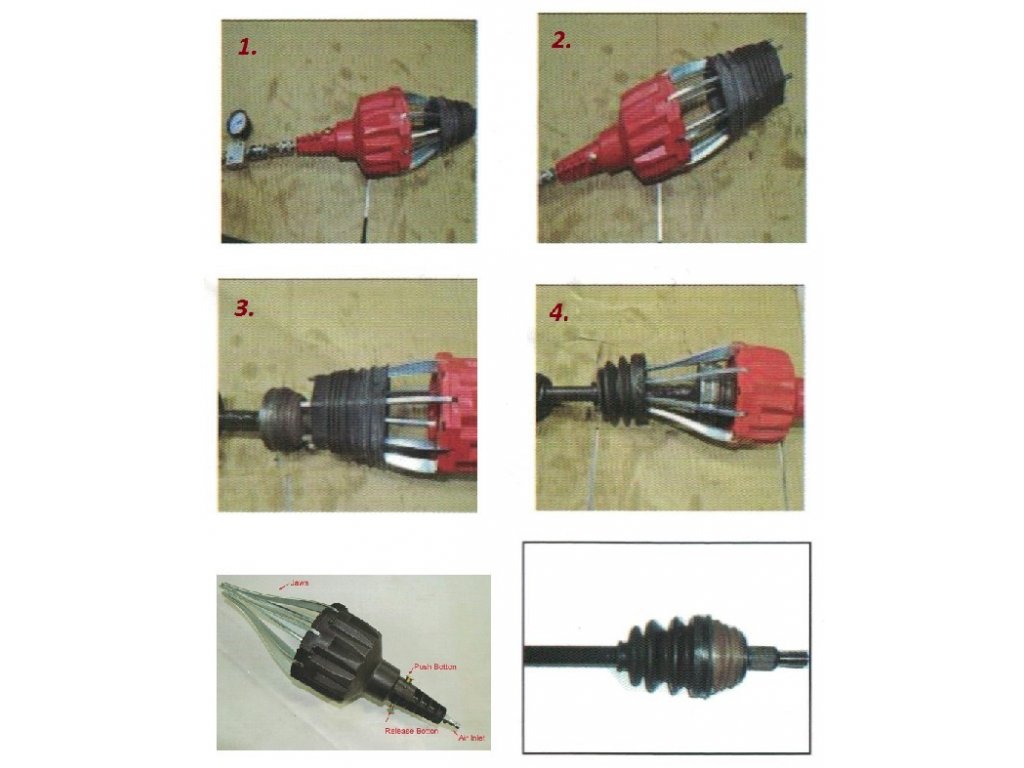 Zkraťte čas výměny manžet na zlomek původní doby. Tento přípravek pomocí osmi silných ramen plynule roztáhne elastickou manžetu, kterou následně jednoduše přetáhnete přímo přes homokinetický kloub na vozidle.