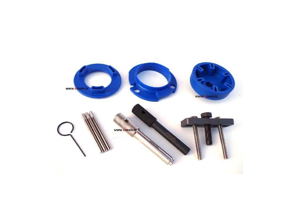 V sadě se nachází aretace a stahovák vysokotlaké pumpy, aretace klikové hřídele, piny na setrvačník (zlatý, stříbrný), pin na napínák.