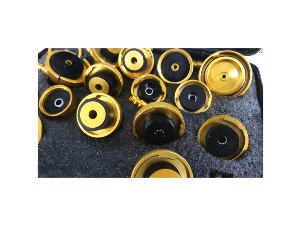 Sada obsahuje kufřík s adaptéry pro většinu typů nádobek na brzdovou kapalinu v osobních automobilech a lehkých užitkových vozidlech