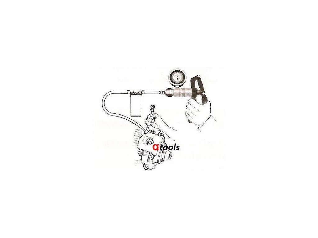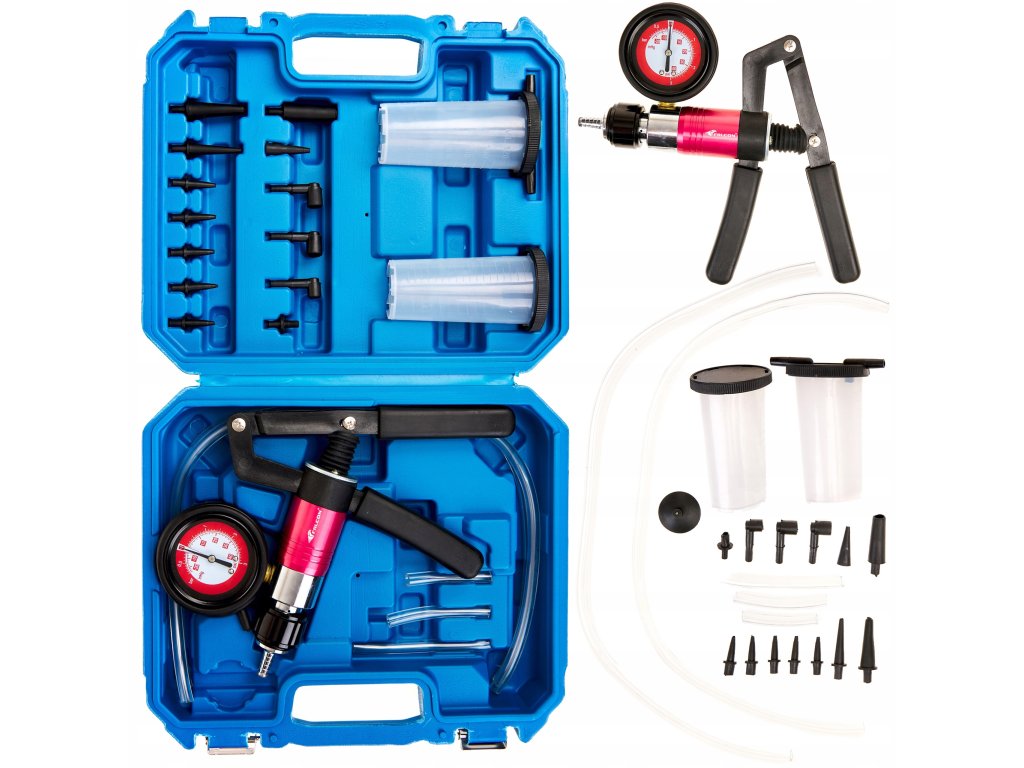 Ruční pumpa s analogovým měřákem k vytváření podtlaku nebo přetlaku, odsávačka provozních kapalin, odvzdušnění brzd, nízkotlakého naftového okruhu..