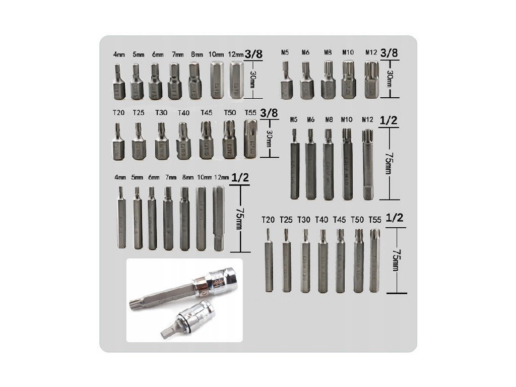 Sada bitů imbus, torx, spline. Vše v praktickém plastovém kufříku40ks