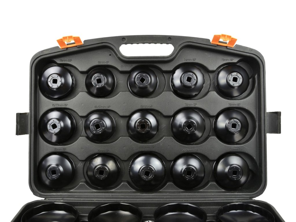 Přesná demontáž: Misky přesně sedí na drážkování filtru, což je klíčové u plastových víček filtrů, které mají tendenci při použití univerzálních řetězových klíčů praskat.