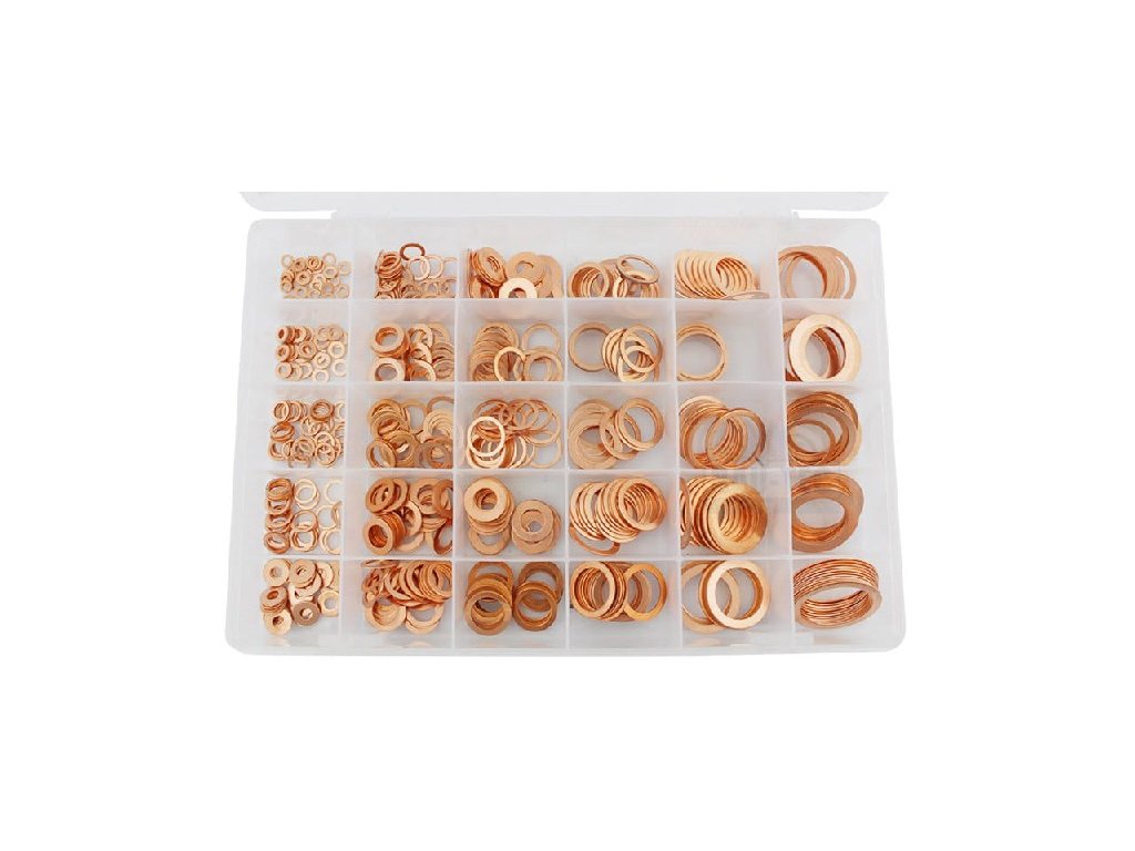 Sada měděných podložek 29 nejběžnějších rozměrů, 580ks, vše v praktické plastové krabičce