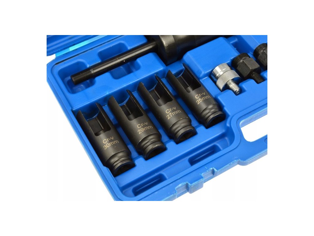7 ks adaptérů M14x1,5 (DELPHI), M17x1 (BOSCH), M20x1 (DENSO), M24x1 (SIEMENS), M27x1 (SIEMENS), M27x1 (BOSCH) a adaptér M14x1,5