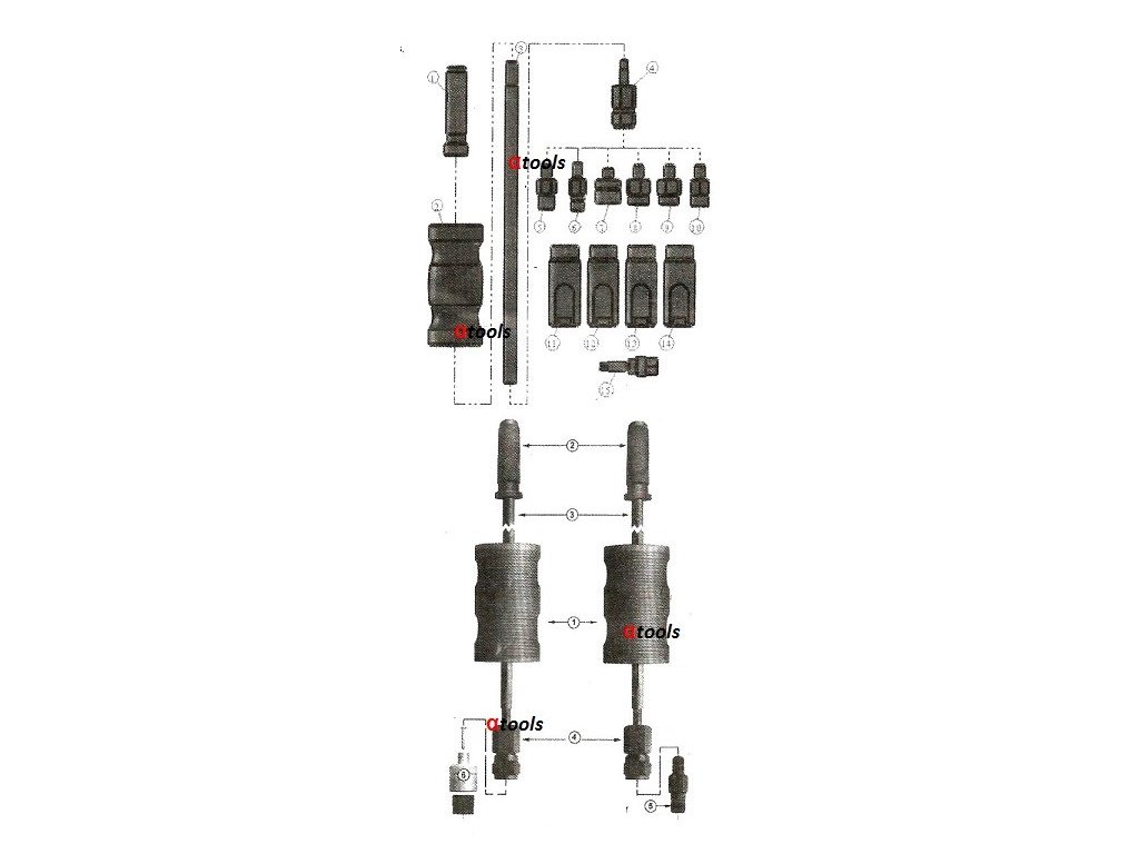 Sada na demontáž vstřikovačů Delphi, Bosch, Siemens, Denso s reverzním kladivem