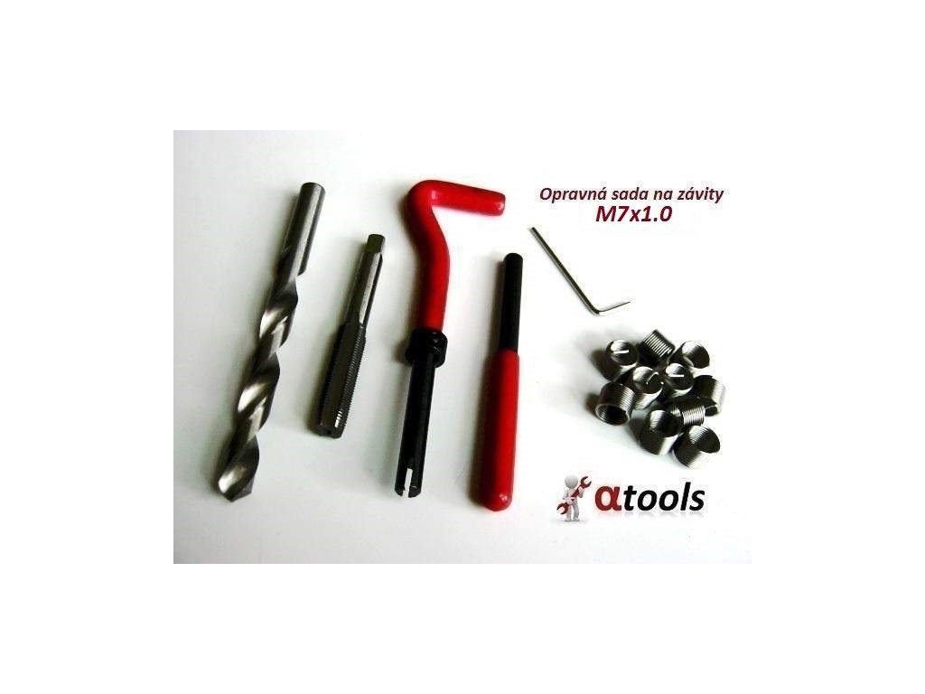 Sada na opravu poškozených, stržených závitů. Pro opravu závitů M7x1.0. V sadě 25ks závitových vložek