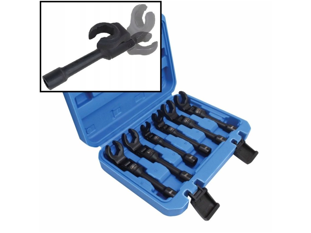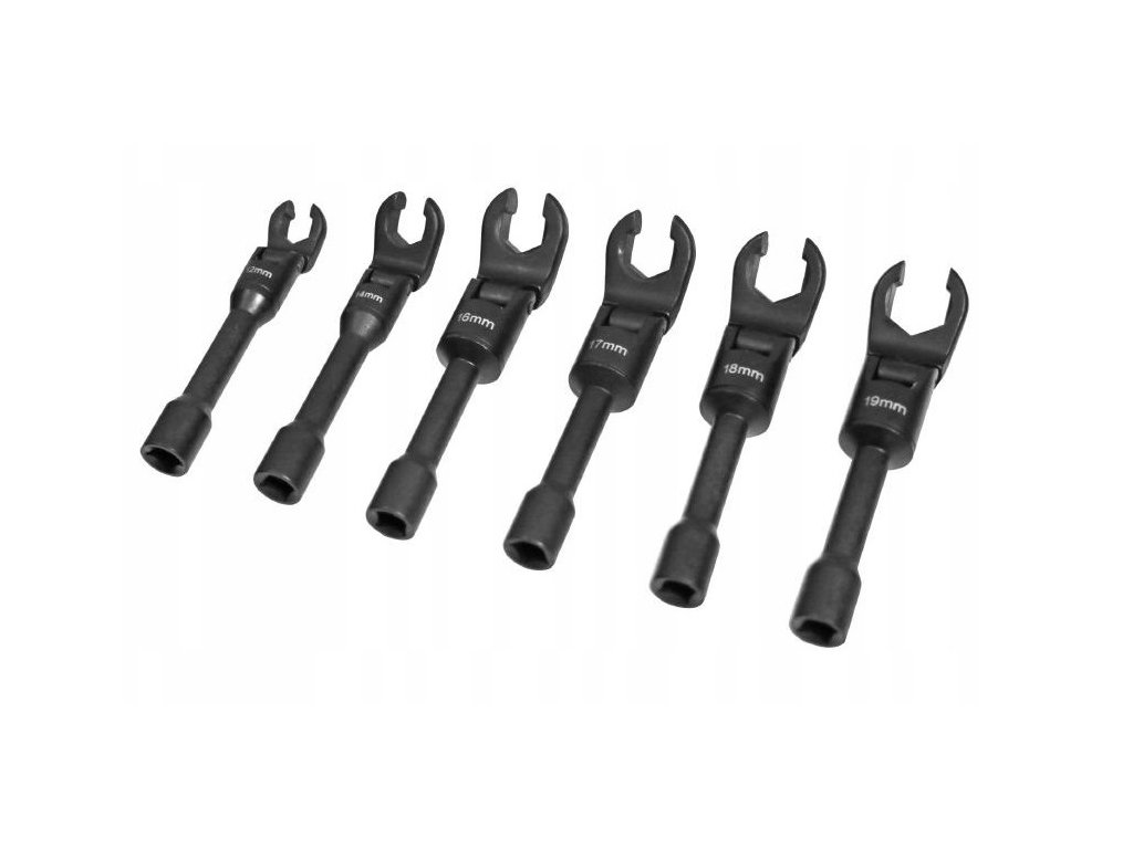 Sada 6ks otevřených klíčů na čidla, senzory, palivové potrubí, čtyřhran 3/8″ 12, 14, 16, 17, 18, 19 mm