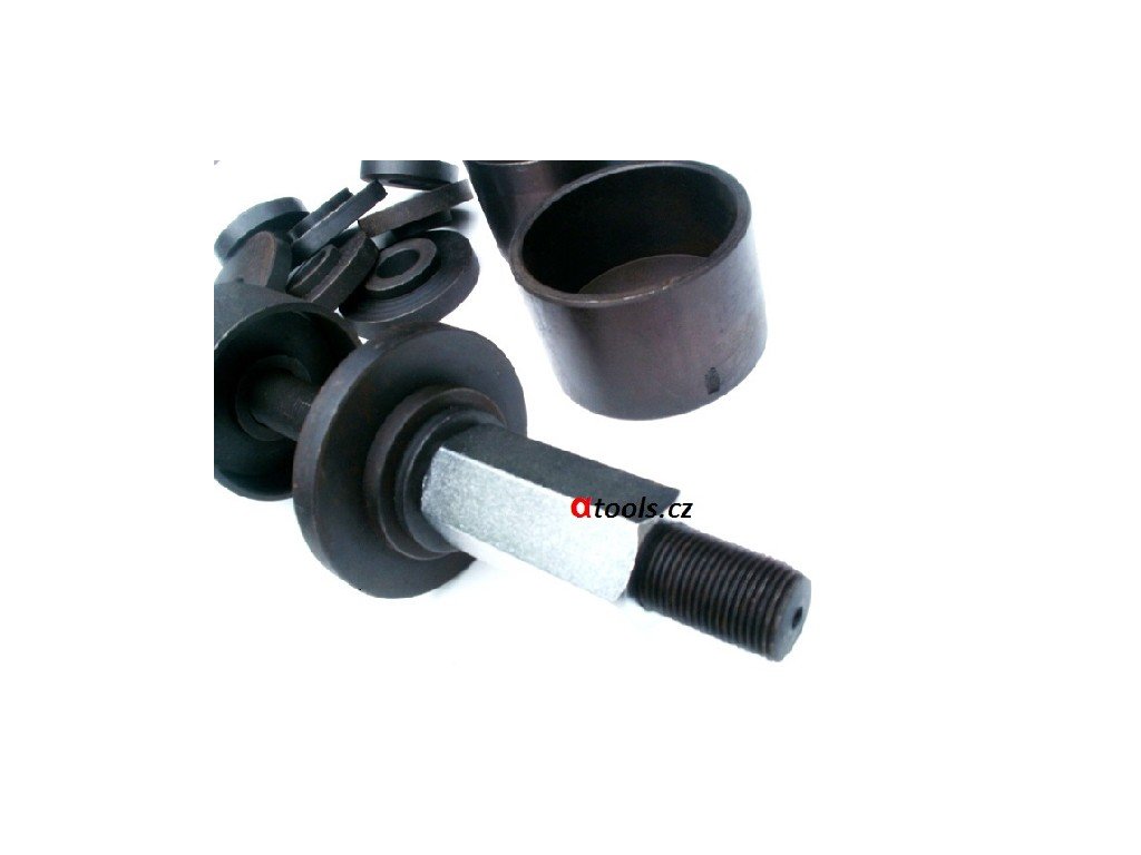 Souprava navržená pro výměnu ložisek předních kol, pouzder, přímo na voze pomocí stahovacího šroubu.
