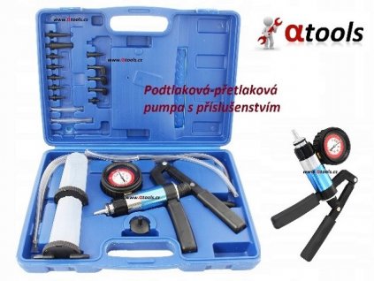 Podtlaková pumpa s příslušenstvím vhodná k odvzdušnění brzd a kontrole a regulaci podtlakových systémů v automobilu.