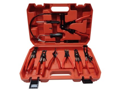 Univerzální sada 7ks kleští a 2ks přípravků pro montáž, demontáž hadicových spon, demontáž hadiček.
