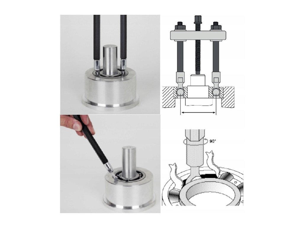 Tato univerzální sada je navržena pro rychlou a bezpečnou demontáž kuličkových ložisek, ke kterým je omezený přístup. Inovativní systém adaptérů umožňuje ložisko stáhnout přímo za dráhu kuliček, což je často jediný způsob, jak vyjmout ložisko nalisované v slepém otvoru nebo hluboko na hřídeli.