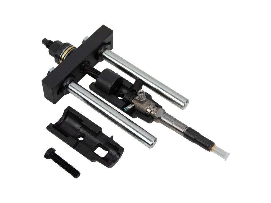 Silová, ale plynulá demontáž: Přípravek pracuje na principu šroubového mechanizmu s axiálním ložiskem. Pomocí klíče (často prohnutý klíč) se vyvíjí masivní, ale konstantní tažná síla. Tím se vstřikovač uvolňuje plynule a pomalu, což je ideální pro extrémně zatuhlé díly.