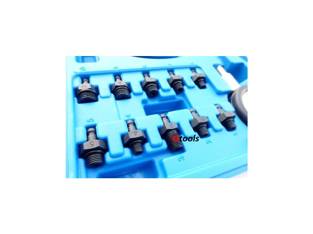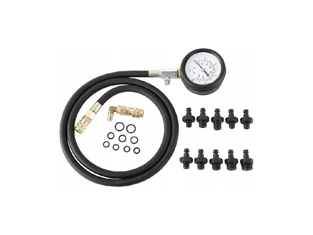 Sada obsahuje měřák tlaku oleje + 10 různých koncovek pasujících do většiny běžných osobních a dodávkových automobilů včetně některých nákladních automobilů MAN, DAF, Renault, Volvo, Scania