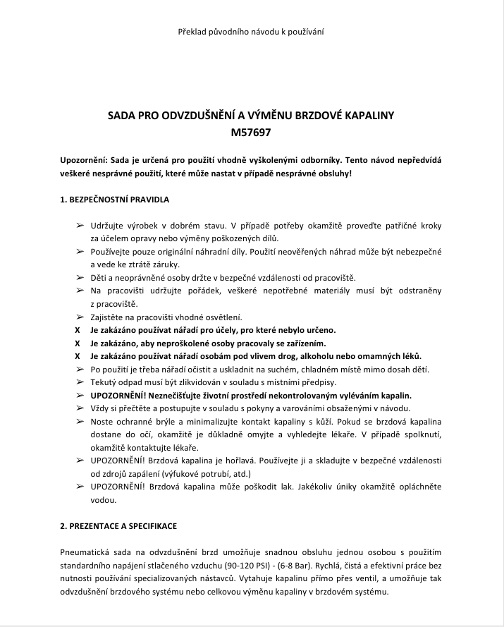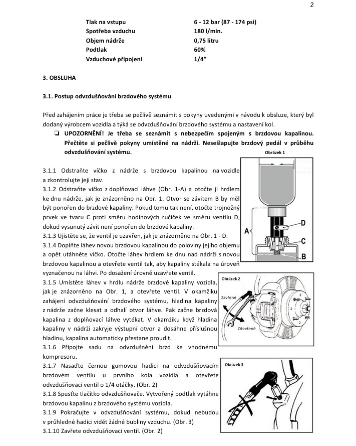 Zařízení na výměnu brzdové kapaliny a odvzdušnění brzdového okruhu. Při práci je nutný zdroj tlakového vzduchu (kompresor). Odpadá pumpování pedálem, na práci stačí jeden člověk.