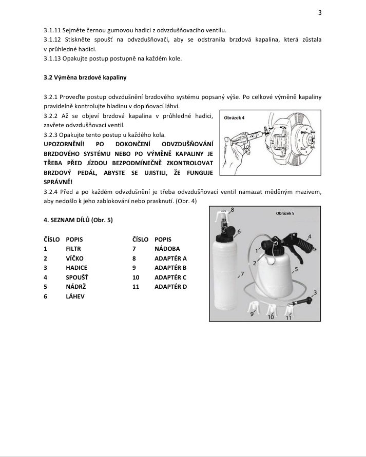 Zařízení na výměnu brzdové kapaliny a odvzdušnění brzdového okruhu